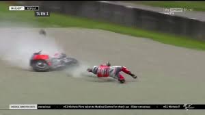 Il pilota della classe MotoGP, in un punto ad altissima velocità, ha perso il controllo della sua moto, crollando rovinosamente al suolo.